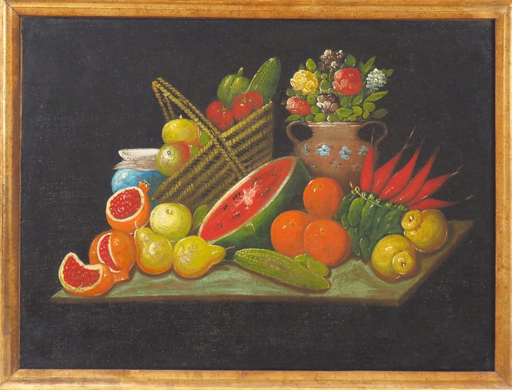 Ecole française dans le goût du XVIIIème. "Natures mortes". Paire d'huiles sur toiles. Dim. 61 x 82 cm. (Réentoilage, restaurations).