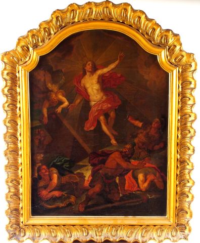 Ecole française de la fin du XVII° siècle "La Résurrection du Christ". Huile sur toile. 67,5 x 50 cm Expert : Gérard AUGUIER