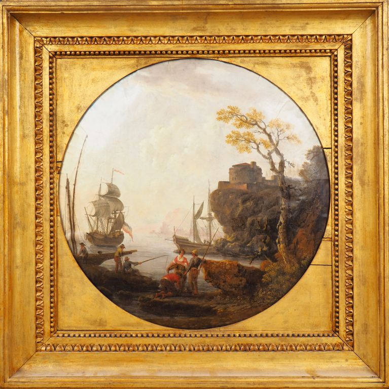 Ecole française début XIXème. "Marine" Huile sur papier en tondo. Diam. 53 cm