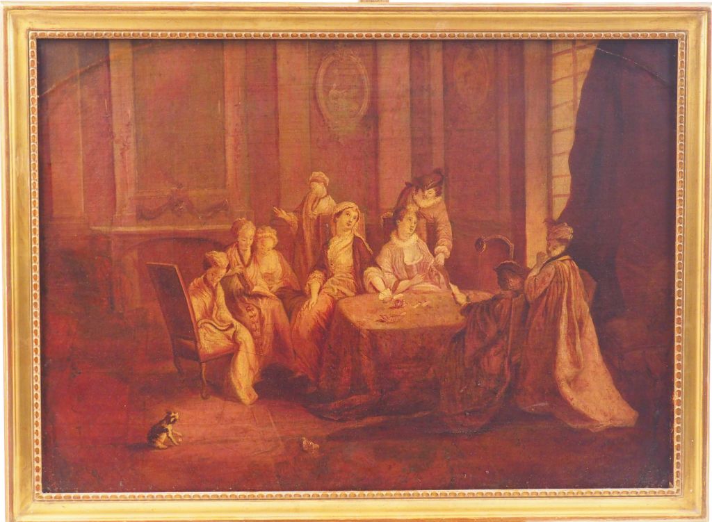 Ecole française début XIXème. 'Nymphes au bain' et 'La lecture du billet'. Paire de grisailles. Dim. : 48 x 67 cm.