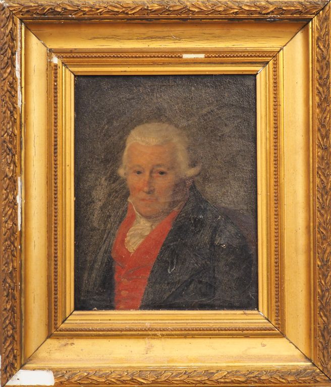 Ecole française début XIXème. "Portrait d'homme au jabot". Huile sur toile. Dim. 27 x 22 cm. (Craquelures).