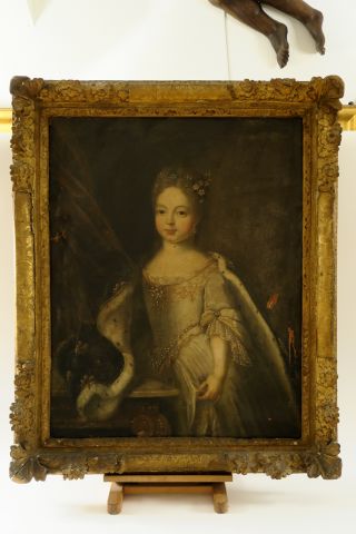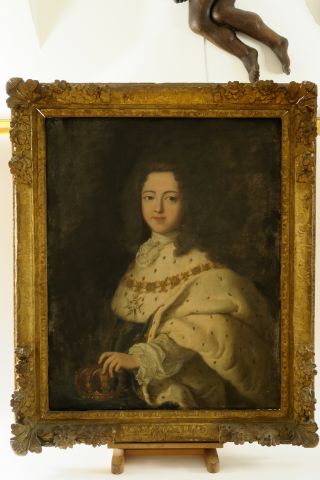 Ecole française du XVIII° siècle Portrait de Louis XV en costume du sacre. Portrait présumé de l’infante Marie-Anne-Victoire d’Espagne Deux huiles sur toile, formant pendant 81 x 64,5 cm Cadres anciens