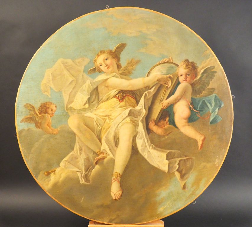 Ecole française du XVIIIè entourage de Charles Michel Ange Challes Uranie Toile Largeur : 92 cm Expert : Cabinet Turquin - Stéphane Pinta