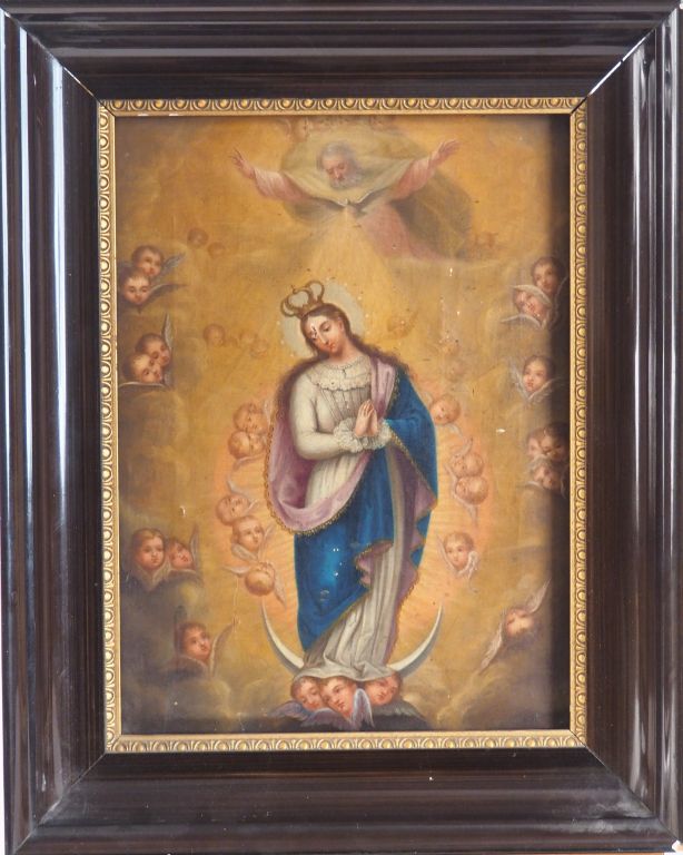 Ecole française fin XVIIIème début XIXème "Assomption". Huile sur toile. Dim. 33,2 x 25,4 cm. (accident et restauration).