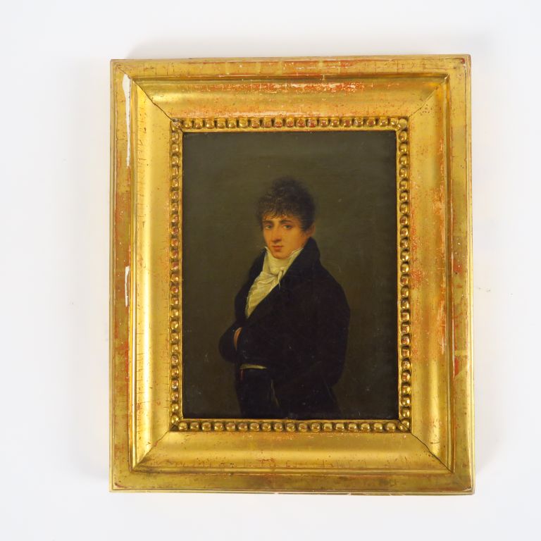 Ecole française fin XVIIIème/début XIXème. "Portrait d'homme au jabot". Huile sur toile. Dim. 22 x 17 cm