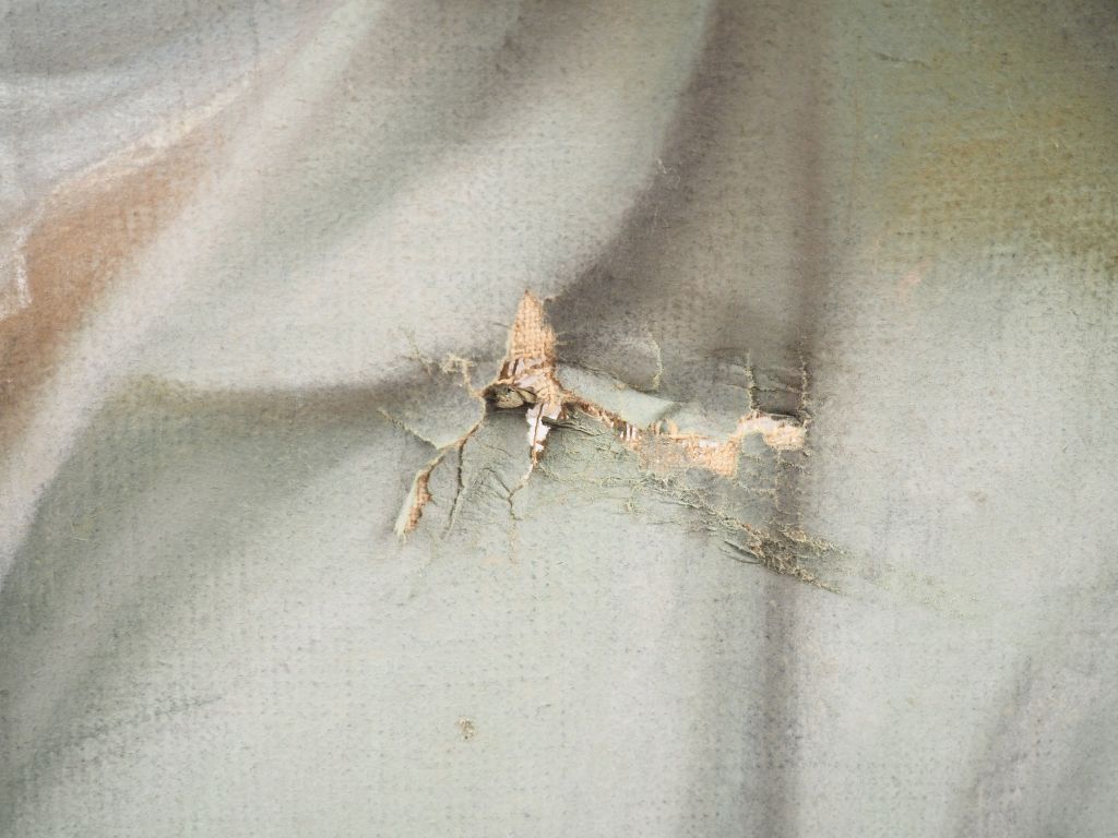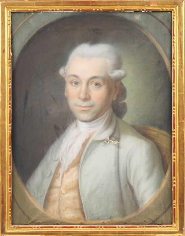 Ecole française fin XVIIIème. "Portrait d'homme à la redingote bleue". Pastel. Dim. 61,5 x 47 cm. (mauvais état)