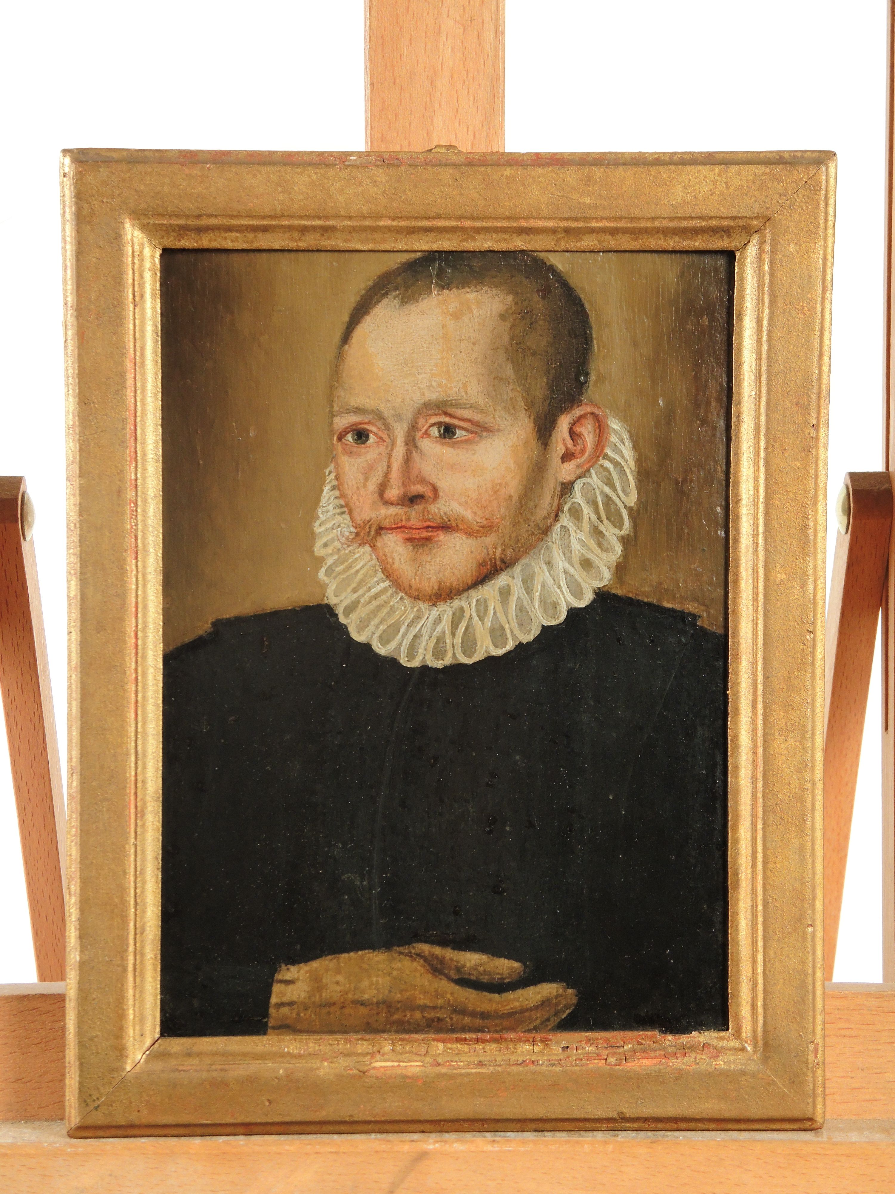 Ecole Française "Portrait d’homme en habit Louis XIII" Huile sur panneau. 17.5 x 13.5 cm
