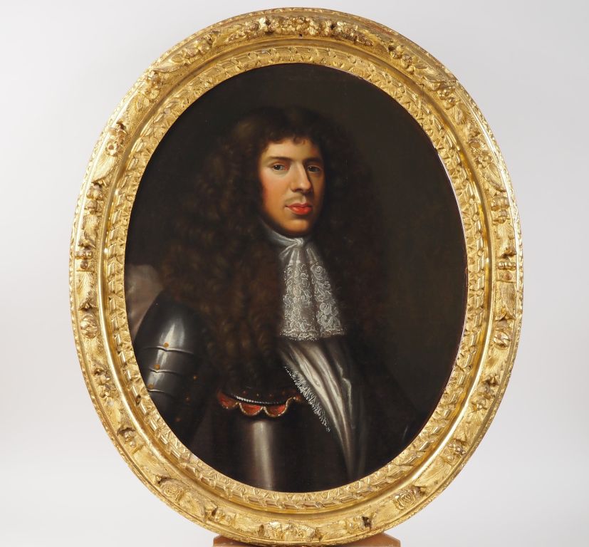 Ecole française seconde moitié du XVIIIème. "Portrait d'homme en armure". Huile sur toile de forme ovale. Dim. 73 x 59 cm. (restaurations et réentoilage).