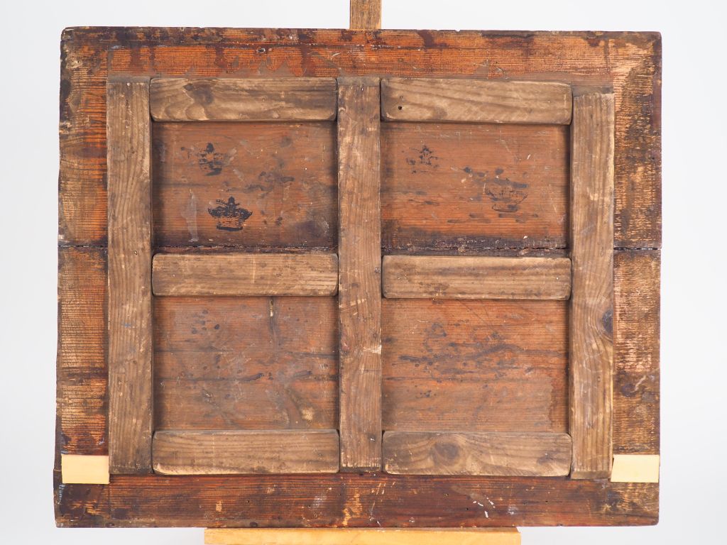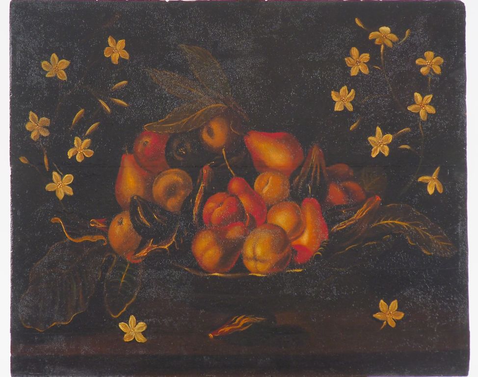 Ecole française vers 1830 dans le goût de Jacques LINARD. "La corbeille de pêches". Huile sur panneau. Dim. 62 x 51,3 cm. (panneau recollé).