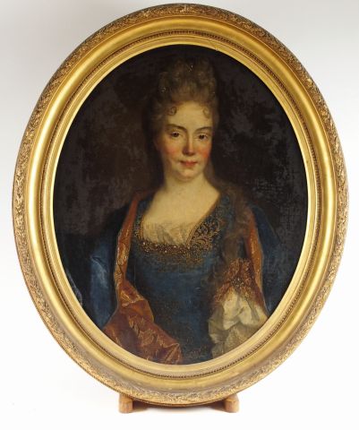 Ecole française XIXème "Portrait de dame en médaillon". Huile sur toile marouflée sur carton. 79 x 63 cm