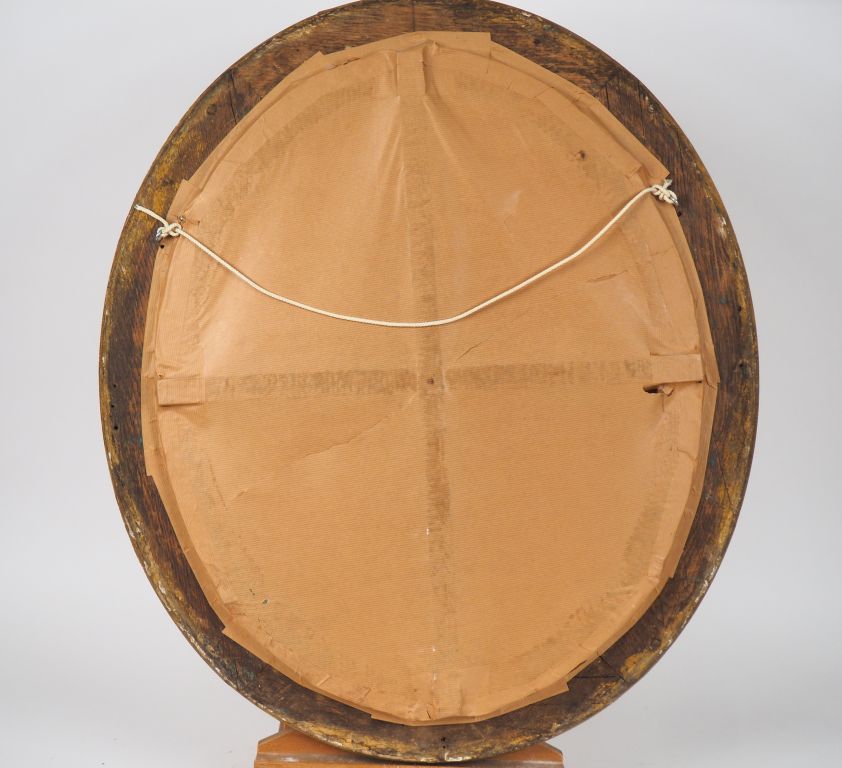 Ecole française XIXème. "Portrait de jeune fille en médaillon". Pastel Dim. 67 x 57 cm.