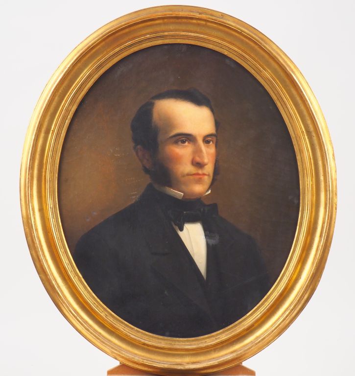 Ecole française XIXème. "Portrait de jeunes époux". Paire d'huiles sur toiles dans des cadres ovales. Dim. 65 x 54 cm. (Restauration, réentoilage).