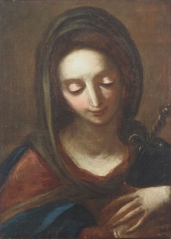 Lot de Ecole française XIXème. "Vierge martyre" Huile sur toile Dim. 46,5 x au prix de 100 à 150 € en vente aux enchères par l'hôtel des ventes Primardeco