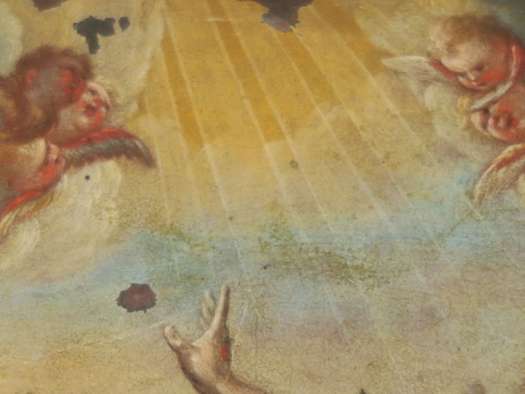Ecole française XVIIème "Saint aux stigmates" Huile sur cuivre. 23,5 x 29 cm (accidents)