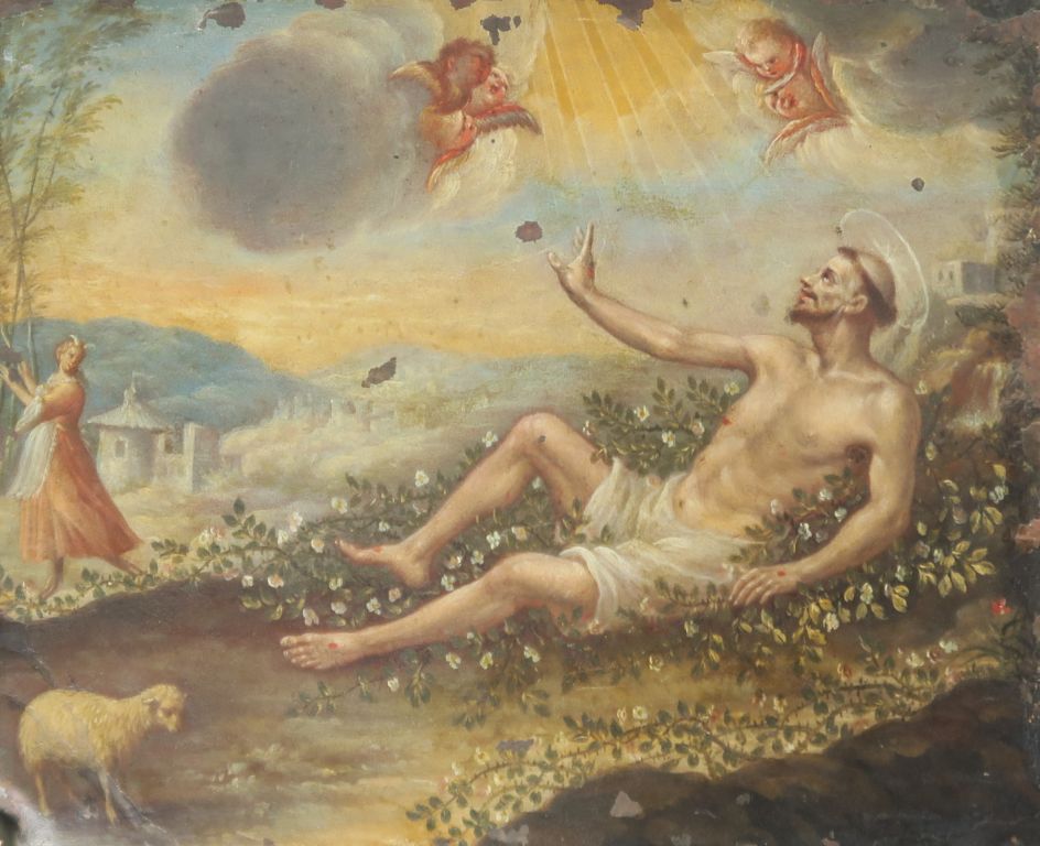 Ecole française XVIIème "Saint aux stigmates" Huile sur cuivre. 23,5 ...