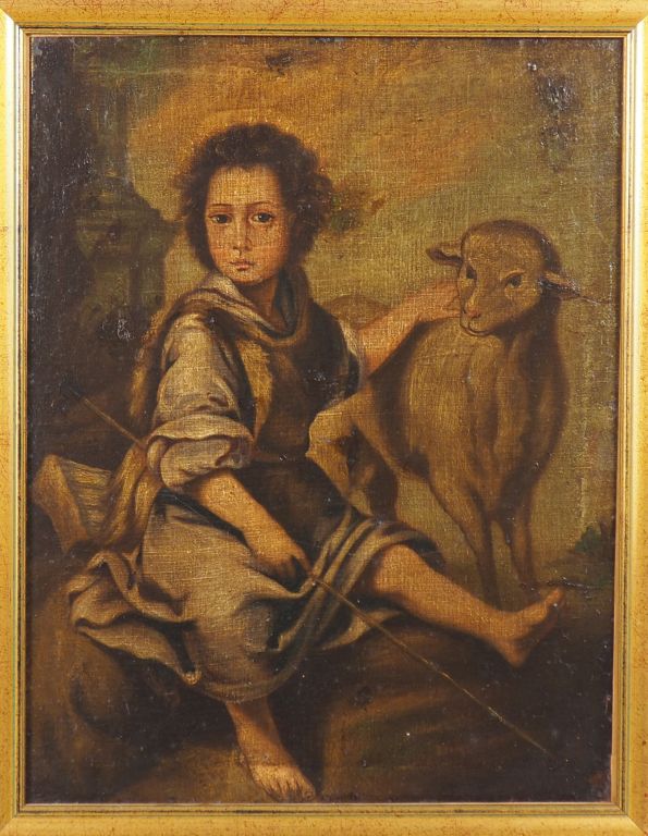 Ecole française XVIIIème. "Jeune berger et sa brebis". Huile sur toile marouflée. Dim. : 52 x 45,5 cm. (Restauration)