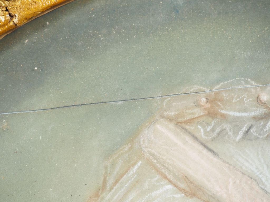 Ecole française XVIIIème. "Portrait de dame à la lecture". Pastel. Dim. (à vue) : 60 x 50 cm. (Fente, usures).