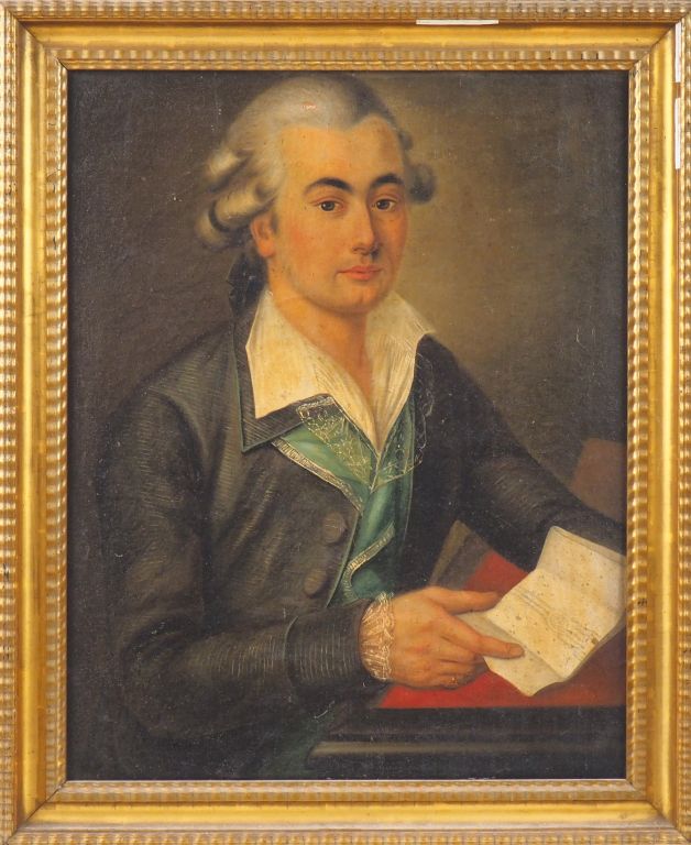 Ecole française XVIIIème. "Portrait d'érudit". Huile sur toile. Dim. 71 x 57 cm. (Restaurations, petit saut de peinture).
