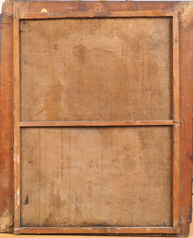 Ecole française XVIIIème. "Vierge à l'enfant". Huile sur toile dans son cadre ancien en bois noirci. Dim. 81,5 x 61 cm. (accidents)