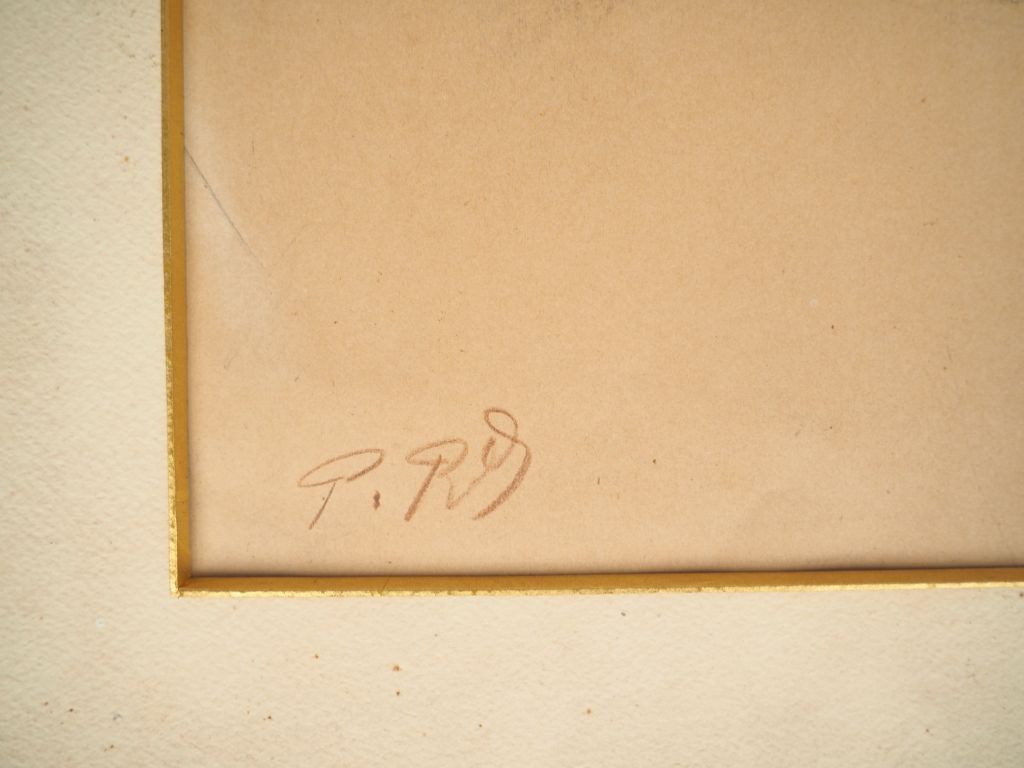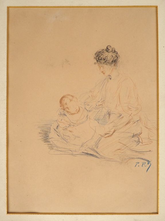 Ecole française XXème. "Jeune mère et son enfant" et "bambins jouant". Dessins monogrammés P.RQ. Dim. 36 x 26 cm.