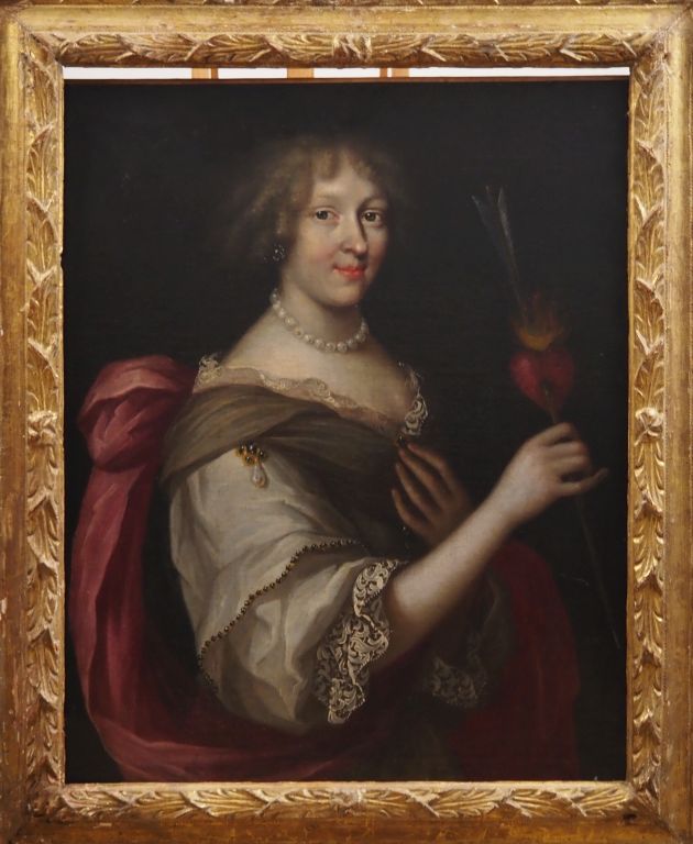 Ecole Hollandaise du XVIIème, entourage de Peter NASON. "Portrait de femme aux attributs de Cupidon". Huile sur toile. Dim. 76 x 63 cm.