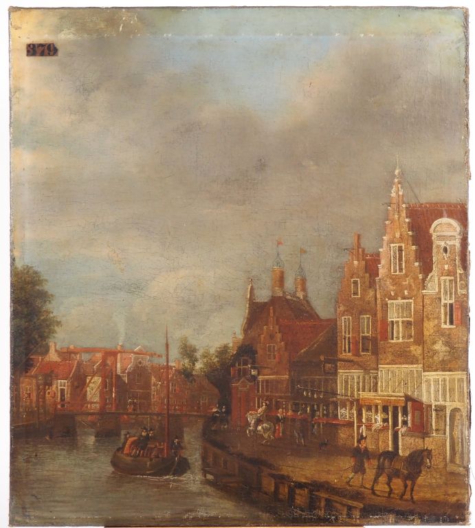 Ecole hollandaise du XVIIème "Vue d'Amsterdam" Huile sur toile Dim. 63,5 x 56 cm (restaurations anciennes) Expert : Cabinet Turquin - Stéphane Pinta