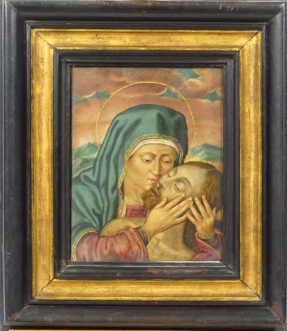 Ecole VENETO-CRETOISE du XVIIème siècle 'Piéta' Cuivre 23 x 19 cm Petits griffures et restaurations anciennes Expert : Cabinet Turquin