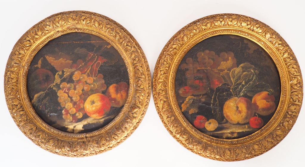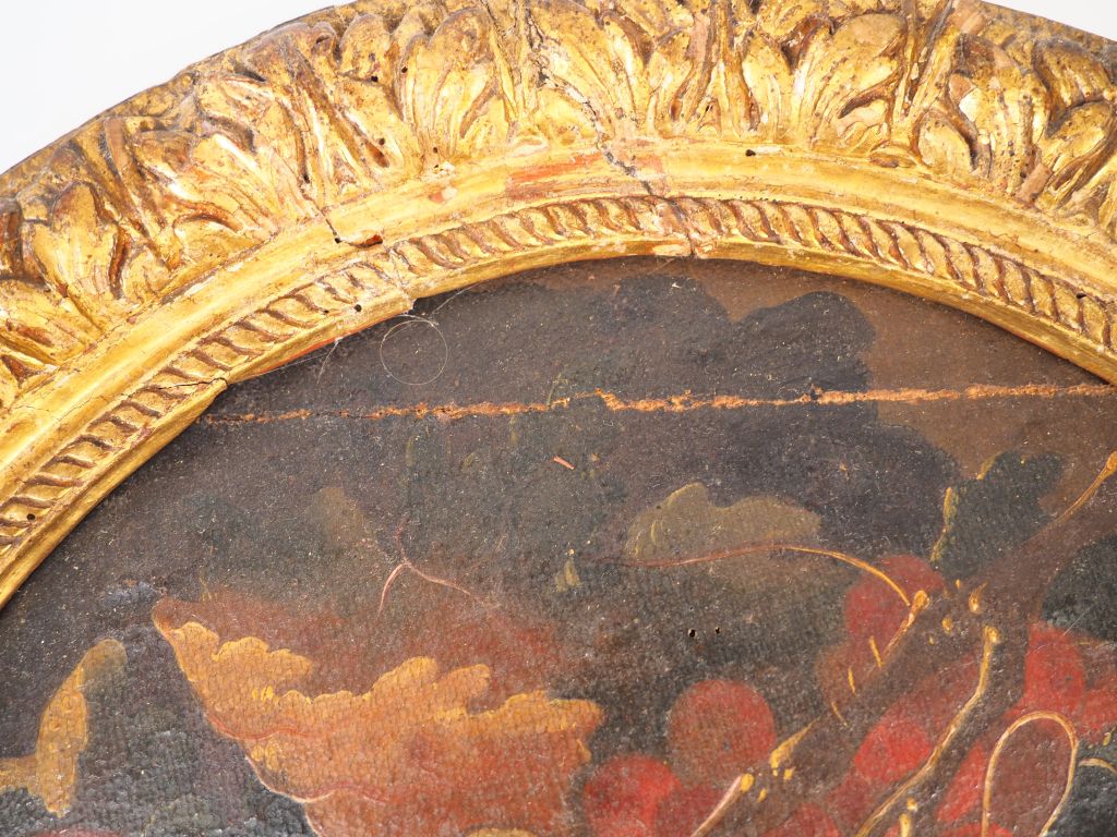 Giovanni Paolo CASTELLI dit Il SPADINO (1659 - vers 1730) Paire de toiles marouflées sur panneau de sapin Cadre en bois sculpté doré travail français d'époque Louis XIV Largeur : 33 cm Soulèvements et petits manques Expert : Cabinet Turquin - Stéphane Pinta.