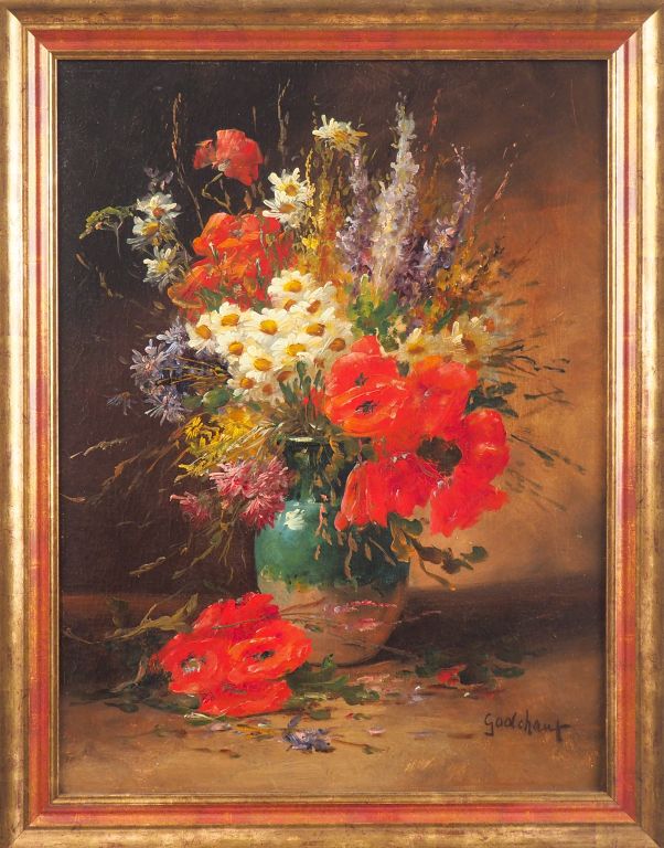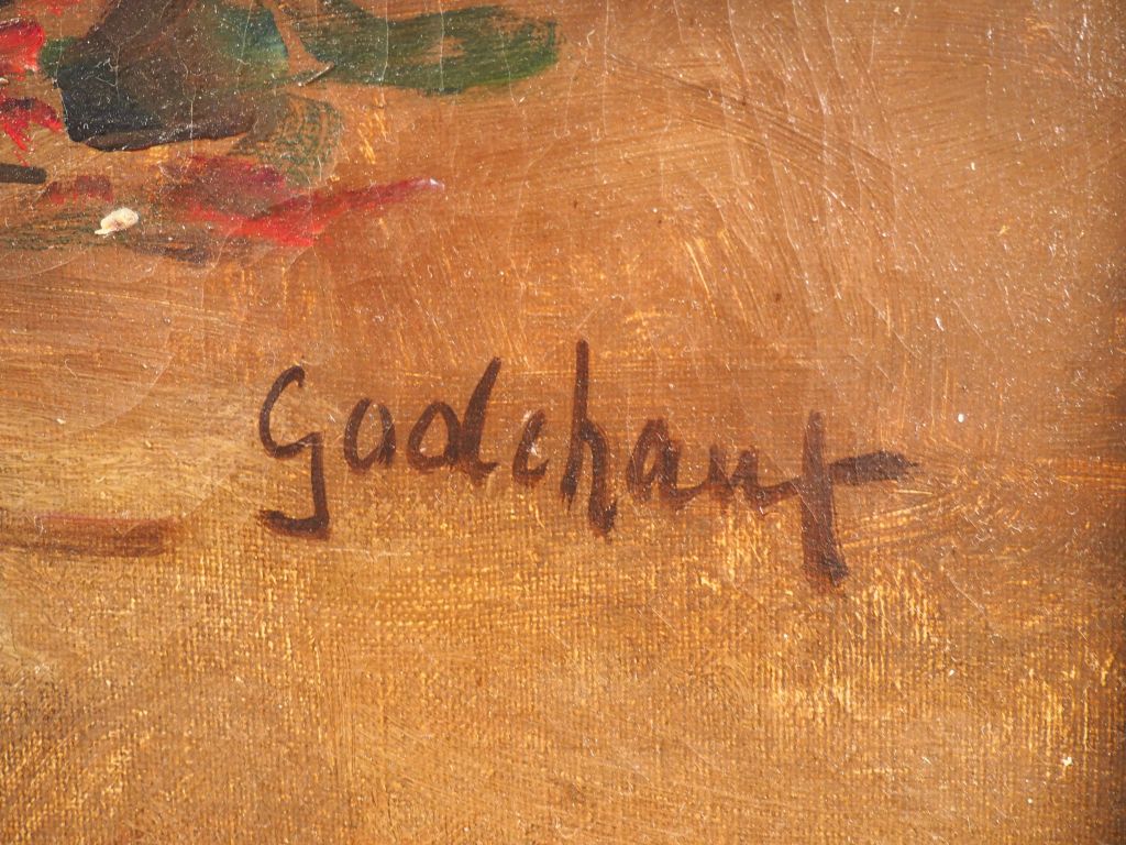 GODCHAUX. "Bouquet de fleur". Huile sur toile, signée en bas à droite. Dim. 65 x 49 cm. (Restauration).