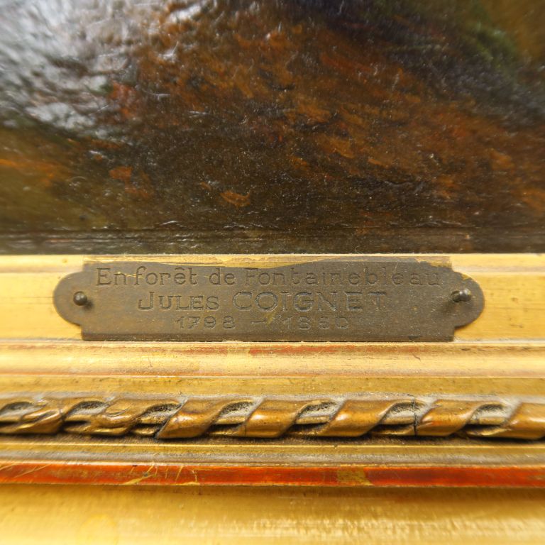 Jules COIGNET (attribuée à) "En forêt de Fontainebleau" Huile sur carton. Non signée. 32 x 48,5 cm