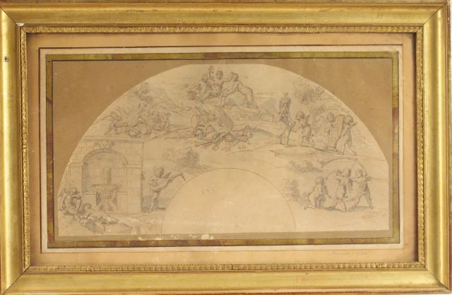 Raymond de LAFAGE (attribué à) "Etude de putti et de personnages mythologiques". Dessin au lavis (accidents). 13 x 41cm