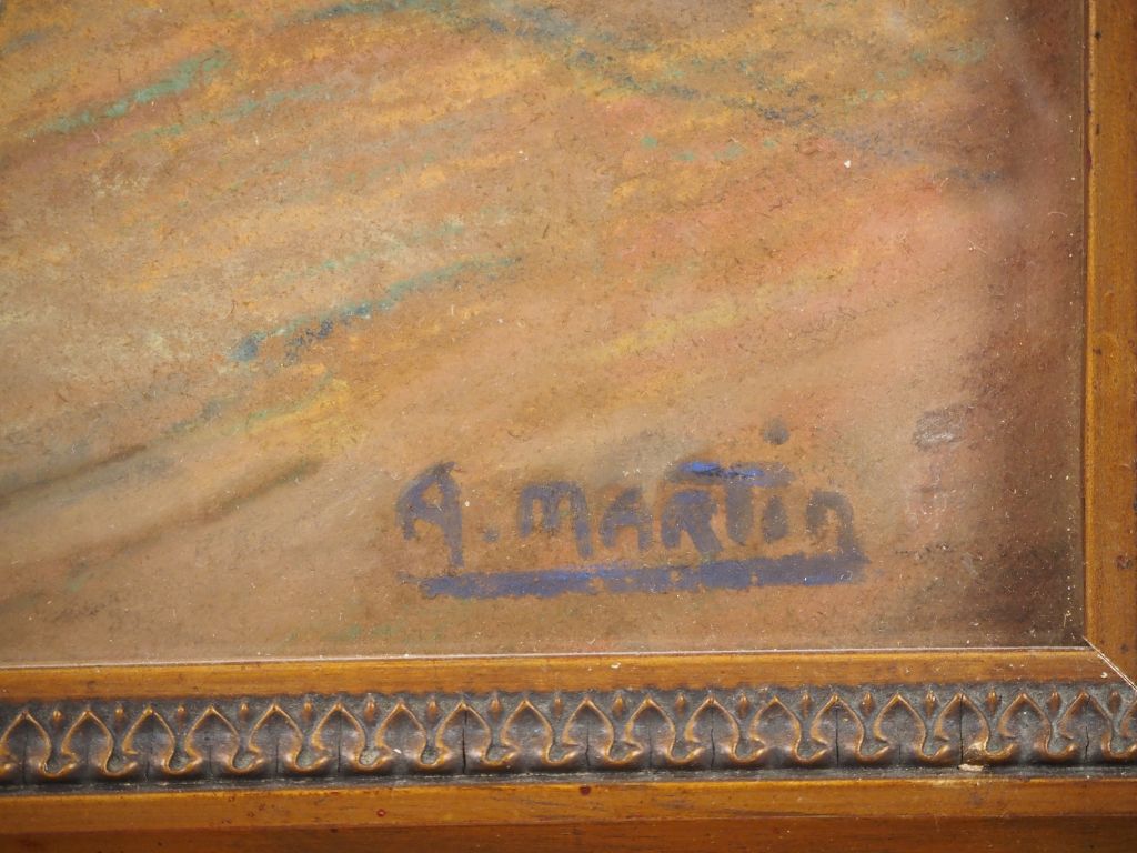 A. MARTIN. "Conversation dans le pueblo de Suria en Catalogne" Pastel, signé en bas à droite Dim. 65,5 x 50 cù