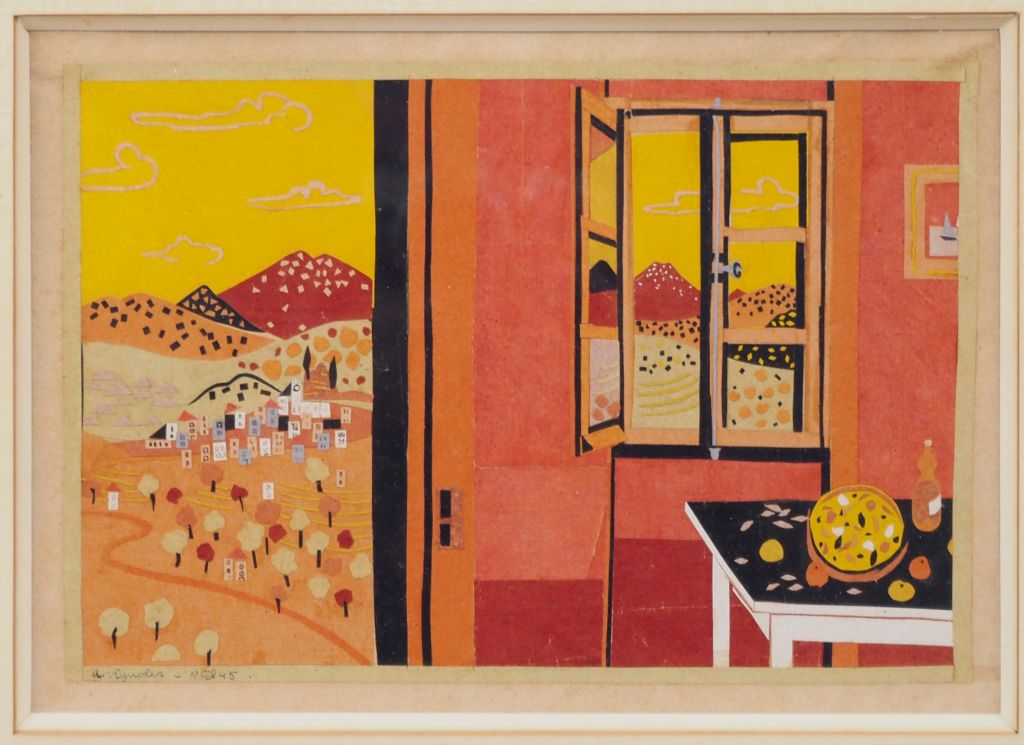 A. VIGNOLES. "Collage et papier découpé" signé en bas à gauche et daté Noël 45 Dim. 15 x 22 cm