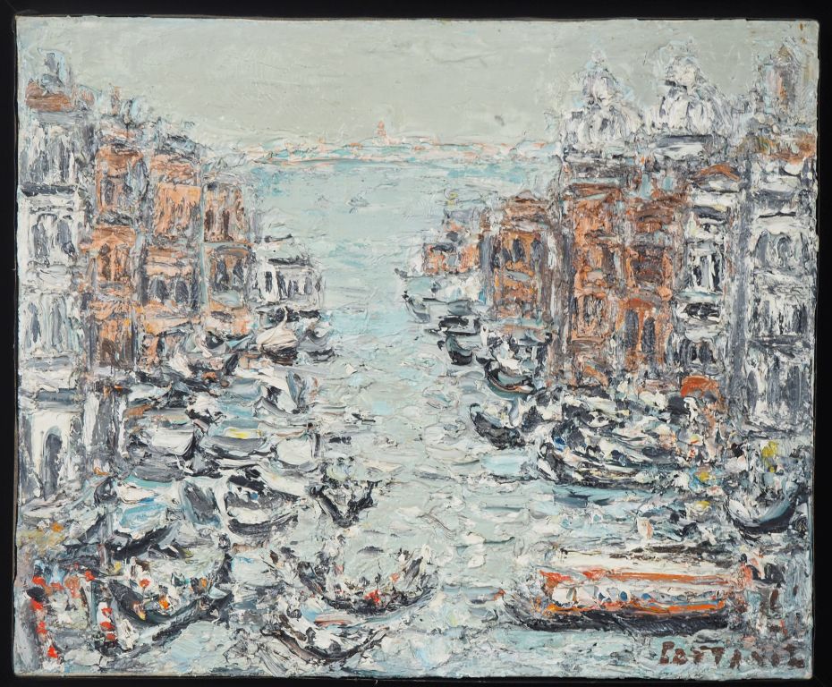 COTTAVOZ. "Venise, le grand canal" Huile sur toile, signée en bas à droite. Dim. 38 x 46 cm