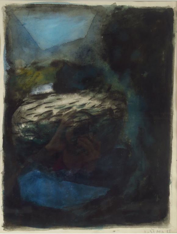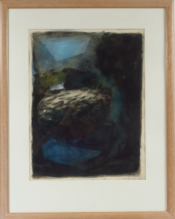 I. SIMA. "Composition abstraite". Aquarelle signée en bas à droite et datée 55 Dim. 44,5 x 34 cm