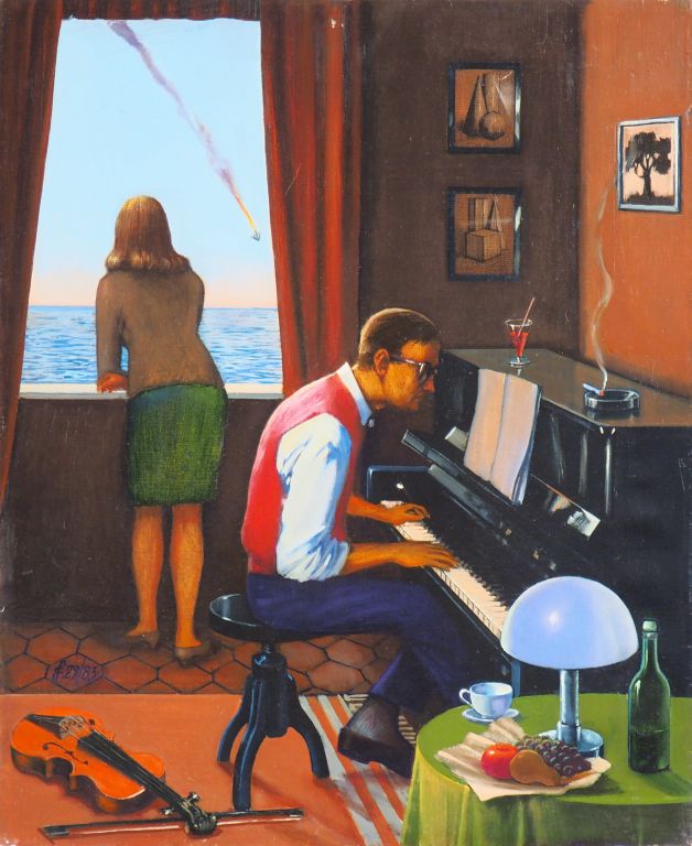 Sergio CECCOTTI. "'Momenta Musicale" Huile sur toile, signée en bas à gauche et datée 83. Dim. 55 x 45 cm