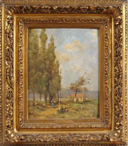 TROUILLEBERT, "Sentier au bord de la Loire". Huile sur panneau. Signée en bas à droite. Dim. : 24 x 19 cm