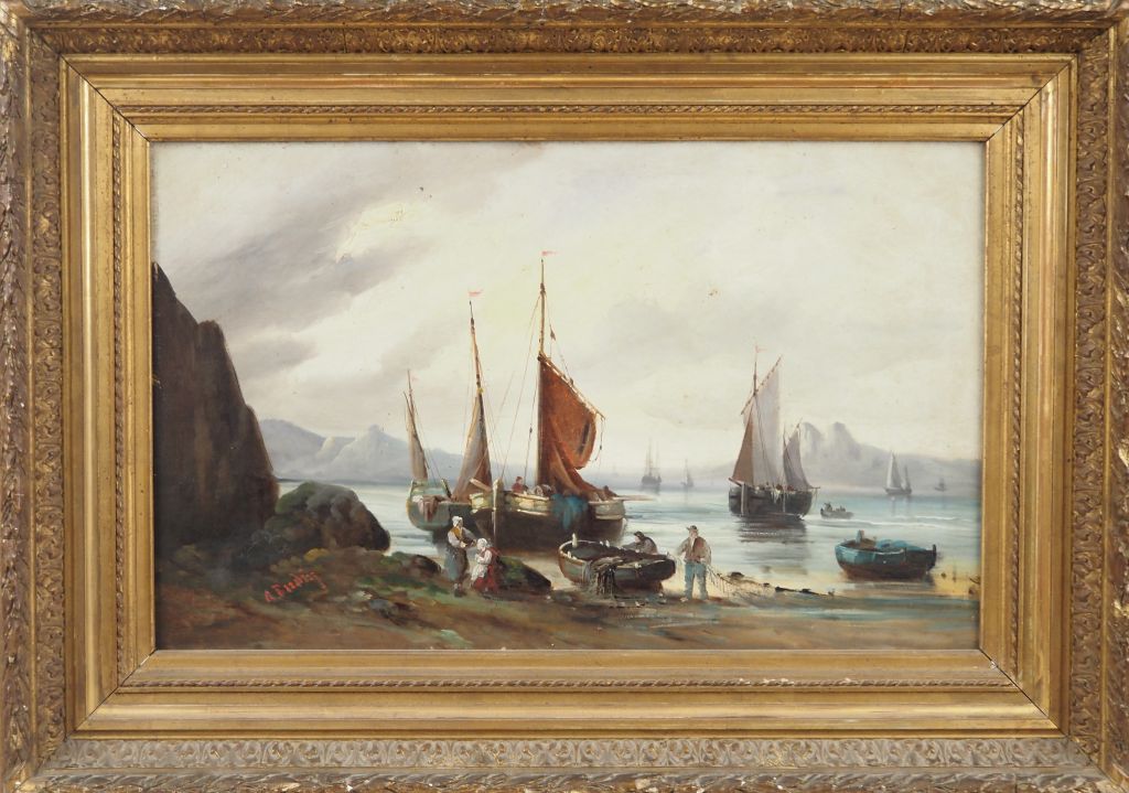 A.BUDIN. "marine" Huile sur toile, signée en bas à gauche. Dim. 38,5 x 61 cm