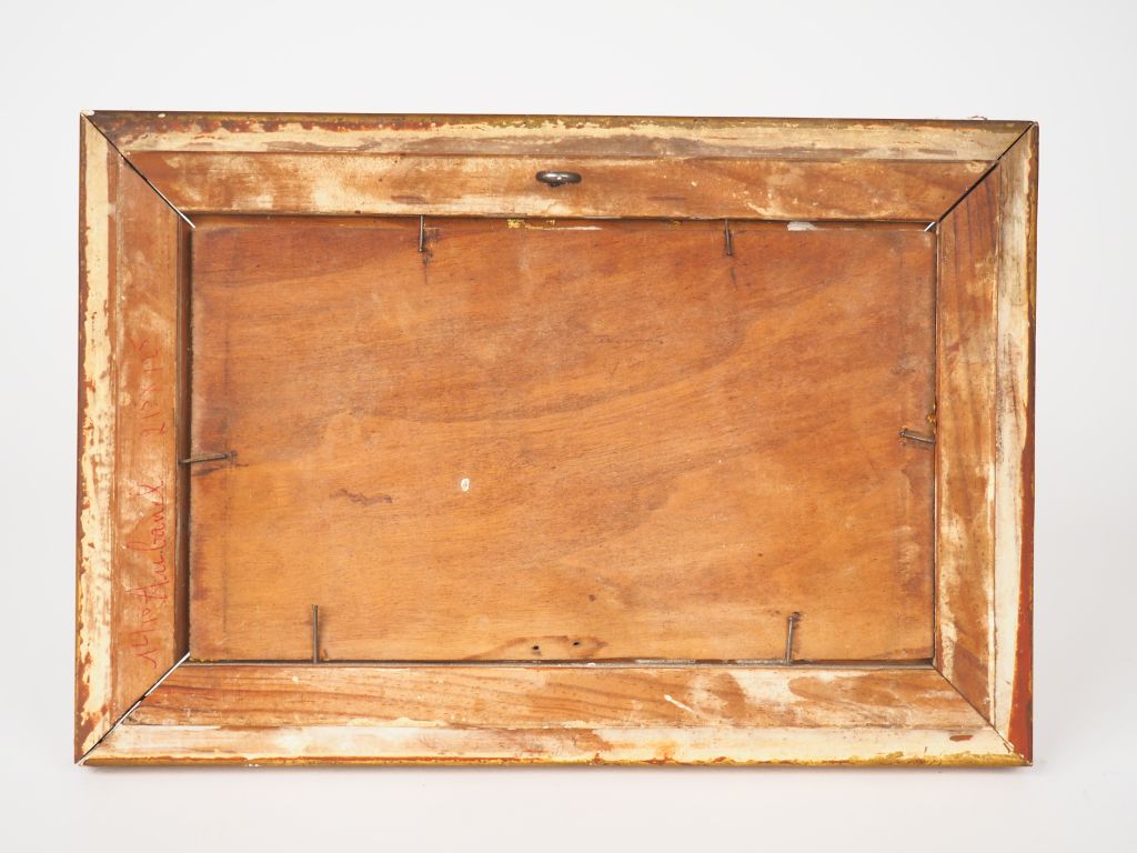 A. FAUGERON. "Bord de rivière". Huile sur panneau, signée en bas à gauche. Dim. 12,4 x 21,5 cm.