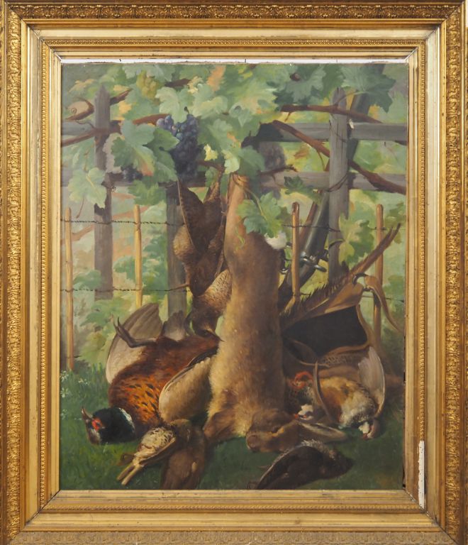 A. TRINQUIER. "natures mortes" Paire d'huiles sur toile, une signée en bas à droite. Dans leur cadre d'origine en mauvais état Dim. 81 x 65,5 cm (accidents)