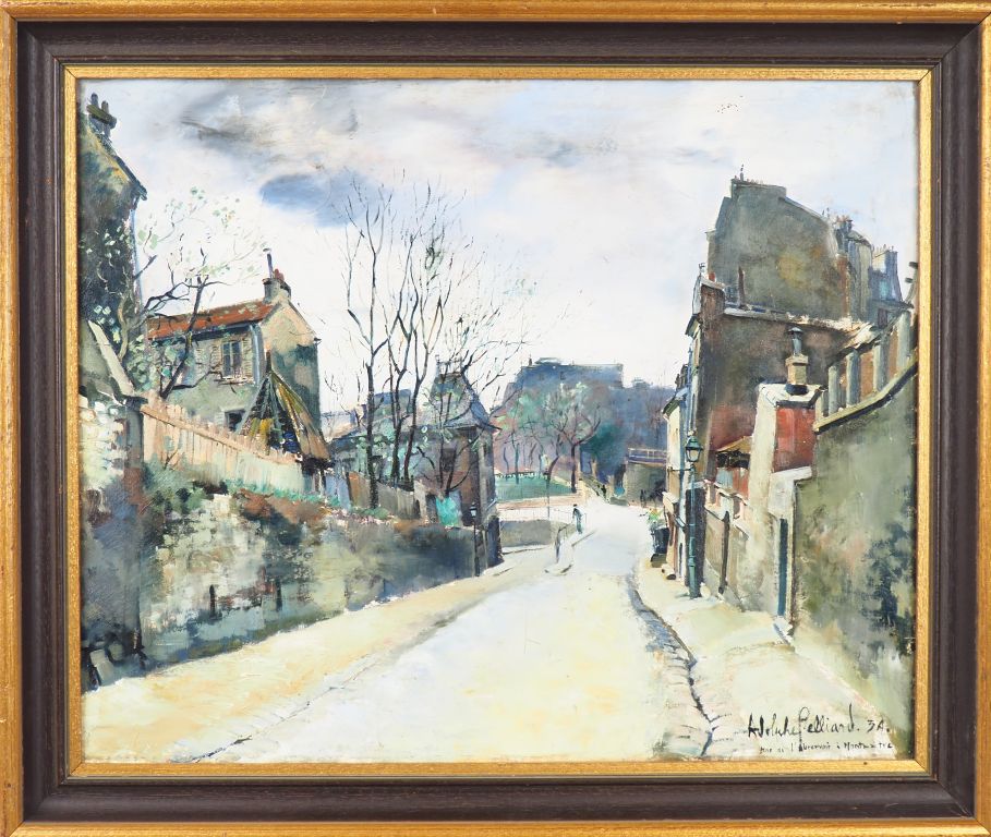 Adolphe BELLIARD. "Abreuvoir à Montmartre". Huile sur toile, signée en bas à droite. Dim. 50 x 61 cm