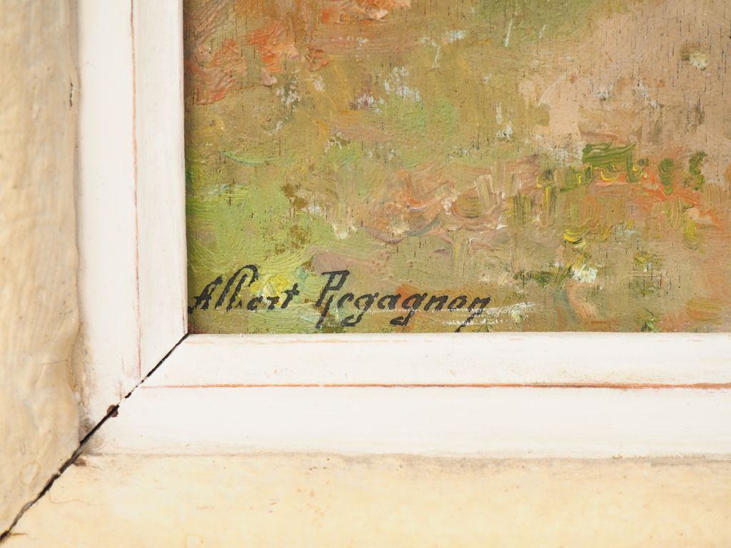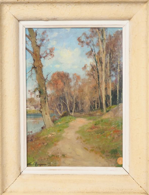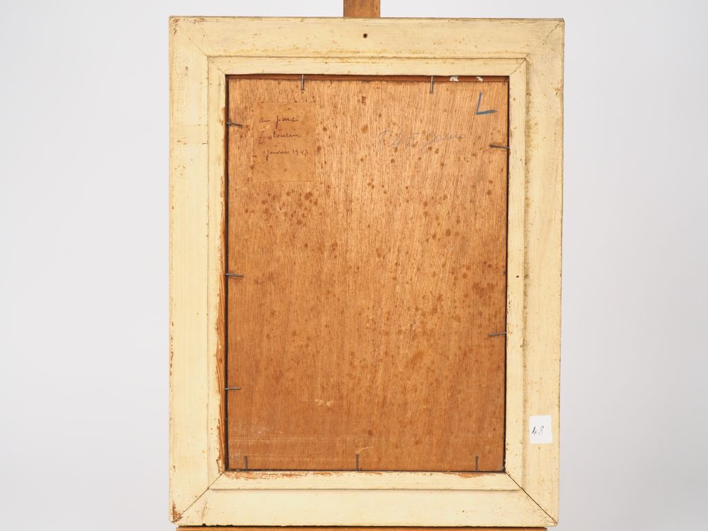 Albert REGAGNON. "Au parc toulousain". Huile sur panneau, signée en bas à gauche titrée et datée janvier 1943. Dim. 33 x 23,5 cm.