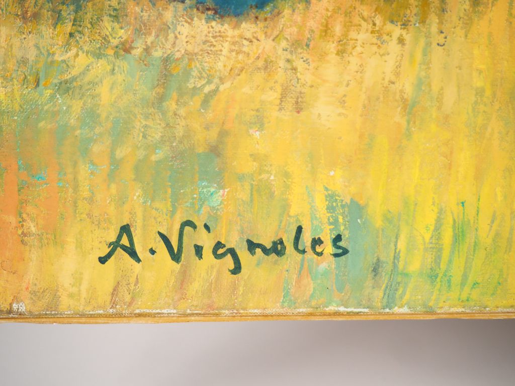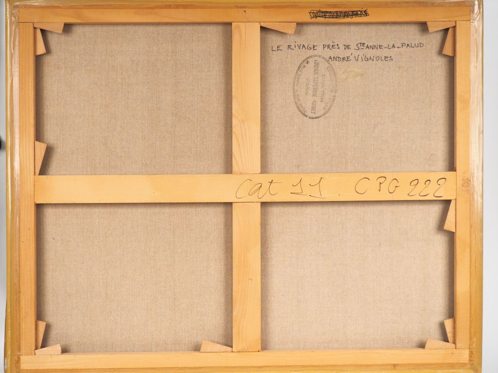 André VIGNOLES. "Le rivage près de Sainte Anne la Palud". Huile sur toile signée en bas à gauche. Dim. 81 x 100 cm.