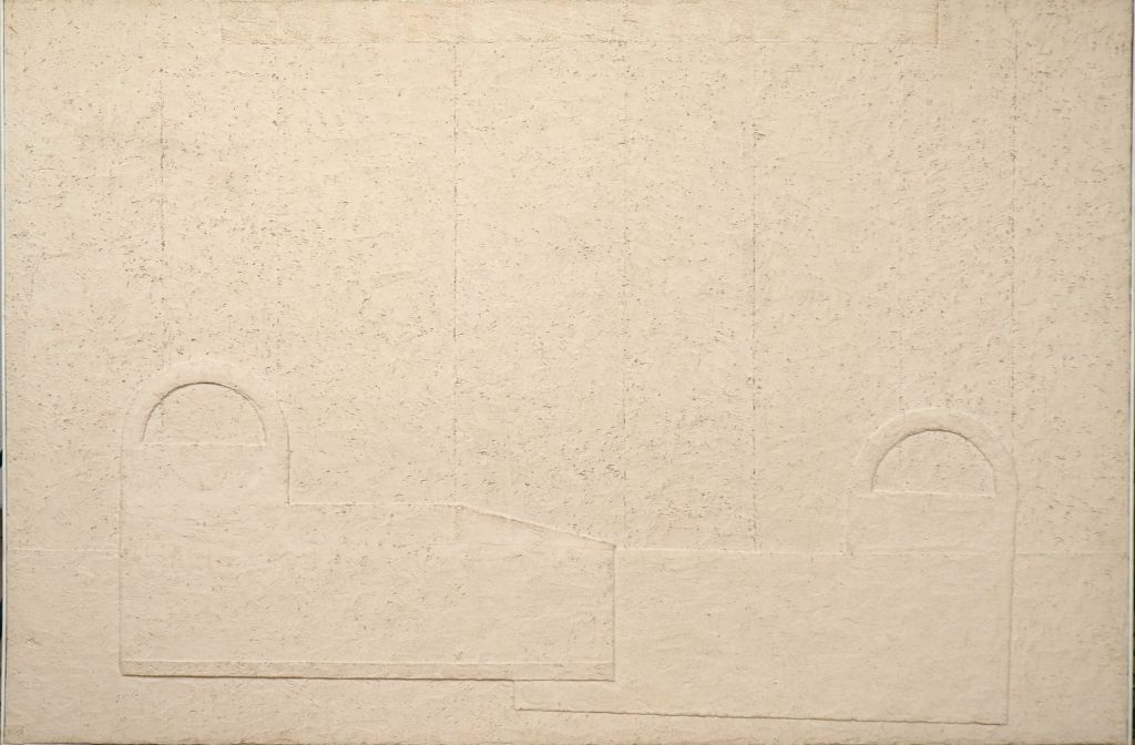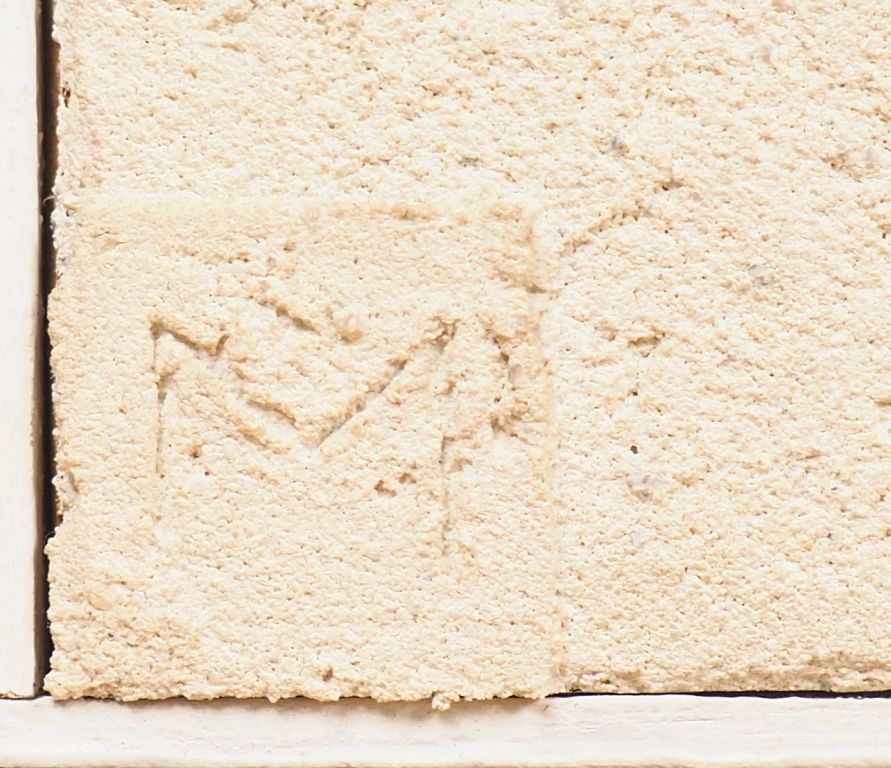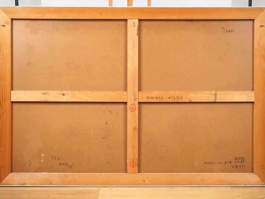 Anna MARK. "Architecture". Technique mixte, monogramée en bas à gauche et signée au dos. Dim. 97 x 146 cm.