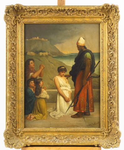 Lot de B. CALNOCKY "La clémence" Huile sur panneau. Signée en bas à droite. au prix de 350 à 500 € en vente aux enchères par l'hôtel des ventes Primardeco
