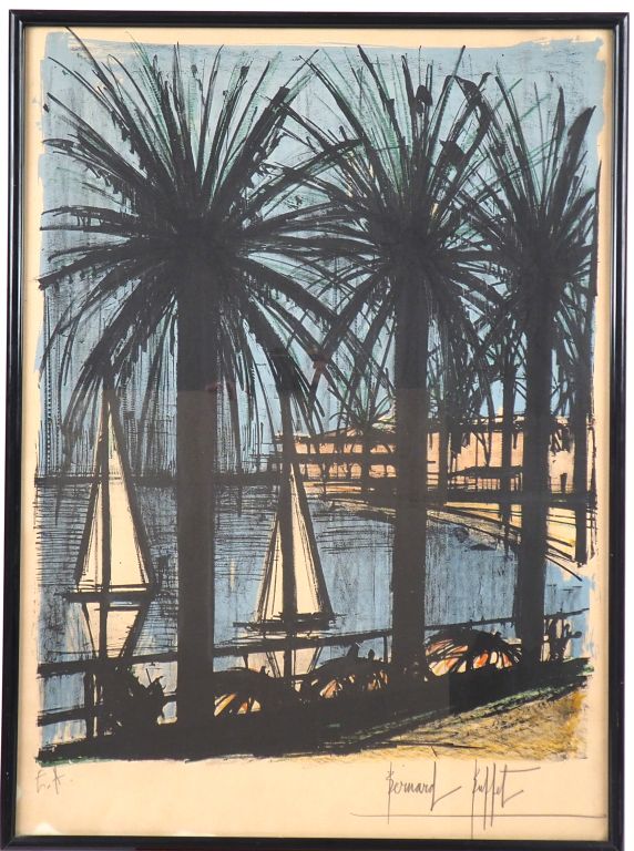 Bernard BUFFET. "Baie de Cannes" Lithographie, signée en bas à droite.