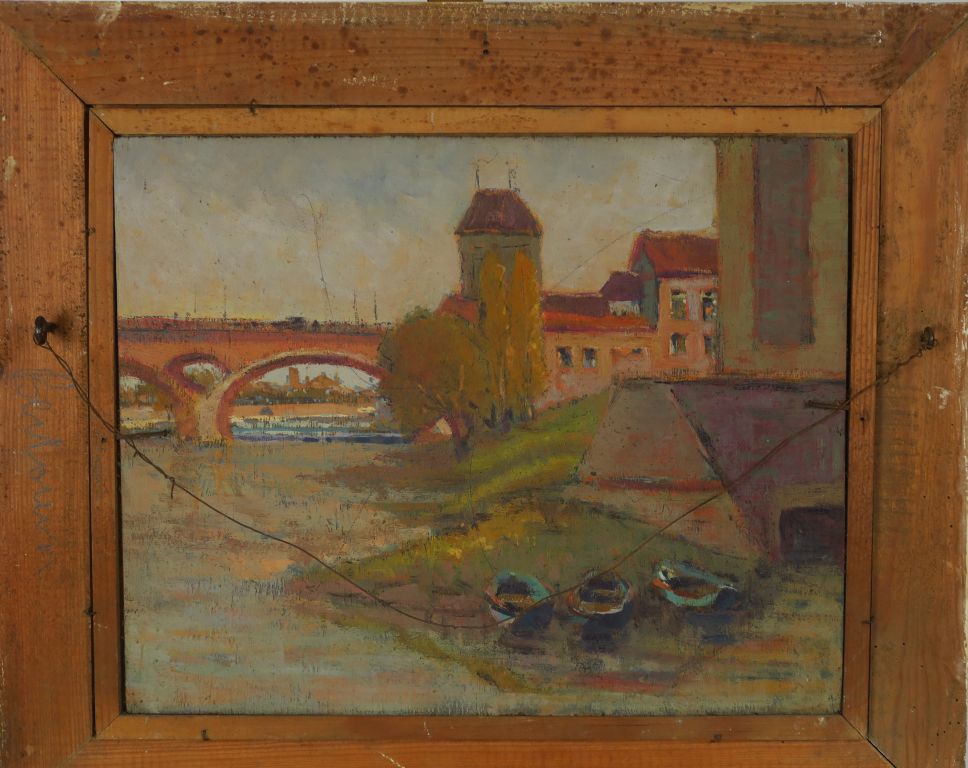 BERTOIN "Toulouse, la Daurade et le Pont Neuf" Huile sur panneau (double face). Signée en bas à gauche. 33 x 41 cm