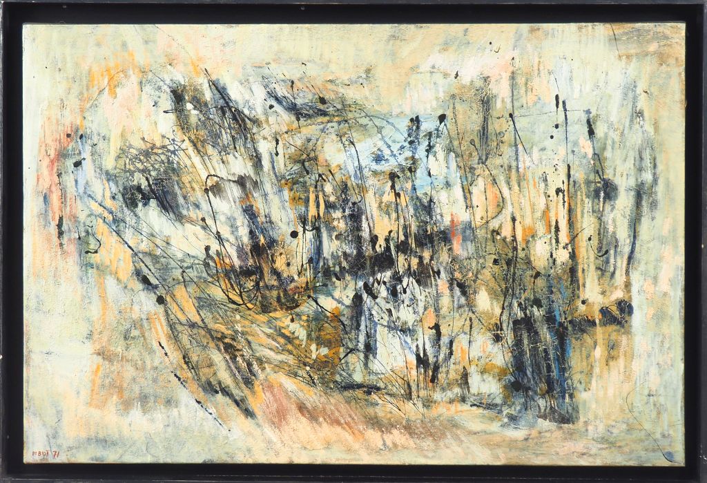 BIOT. "Composition". Huile sur toile, signée en bas à gauche et datée 71. Dim. 54 x 81 cm.