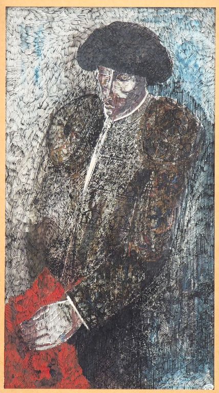 CASTRO. "portrait de Manolete" Encre colorée signée en bas à droite et datée 63 Dim. 52,5 x 28,5 cm