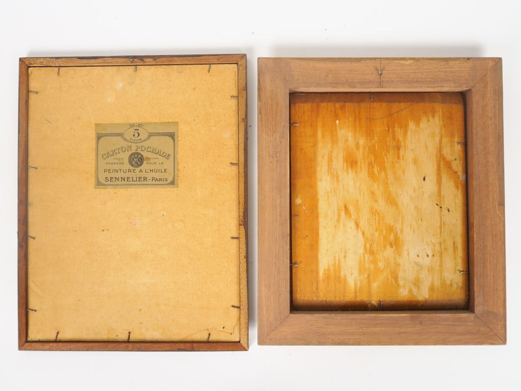 Cécile Patrice BONNET "Paysages montagneux" et "Vue de hameau" Deux huiles sur panneau et deux huiles sur carton. Non signées. 27 x 21,5 cm - 21,5 x 27 cm - 34,5 x 27 cm